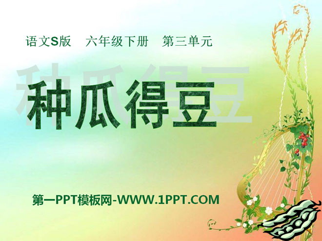 关键词:种瓜得豆教学课件,语文S版六年级下册语文课件,六年级语文幻灯片课件下载,种瓜得豆PPT课件下载,.ppt格式