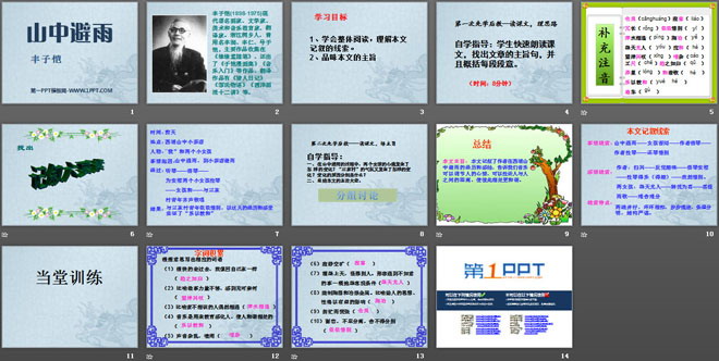关键词:山中避雨教学课件,语文版七年级上册语文课件,七年级语文幻灯片课件下载,山中避雨PPT课件下载,.ppt格式