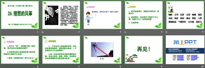 关键词:理想的风筝教学课件,语文S版六年级下册语文课件,六年级语文幻灯片课件下载,理想的风筝PPT课件下载,.ppt格式