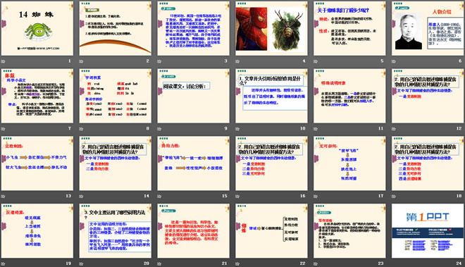 关键词:蜘蛛教学课件,语文版七年级下册语文课件,七年级语文幻灯片课件下载,蜘蛛PPT课件下载,.ppt格式
