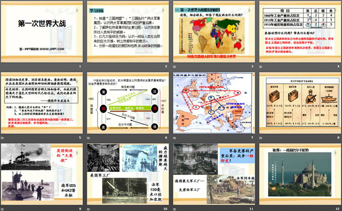 关键词:部编人教版九年级下册历史PPT课件免费下载,第一次世界大战PPT下载,.PPT格式;