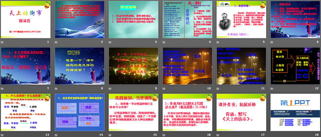 关键词:天上的街市教学课件,语文版七年级上册语文课件,七年级语文幻灯片课件下载,天上的街市PPT课件下载,.ppt格式