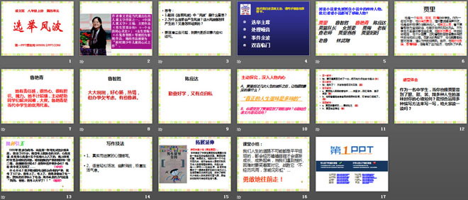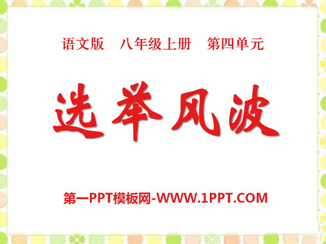 关键词:选举风波教学课件,语文版八年级上册语文课件,八年级语文幻灯片课件下载,选举风波PPT课件下载,.ppt格式