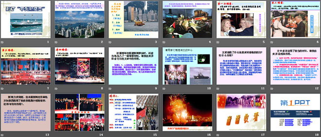 如第4、7、11自然段。背景中有历史事件回顾,港督府的修建、英国统治香港的天数、英国米字旗和港督旗的升降等,虽然只写了一天中发生的事件,但有很大的历史跨度,容量非常大,使人在丰富的知识中感受到深厚的历史内涵。
