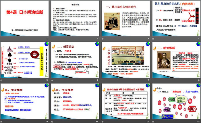 关键词:部编人教版九年级下册历史PPT课件免费下载,日本明治维新PPT下载,.PPT格式;