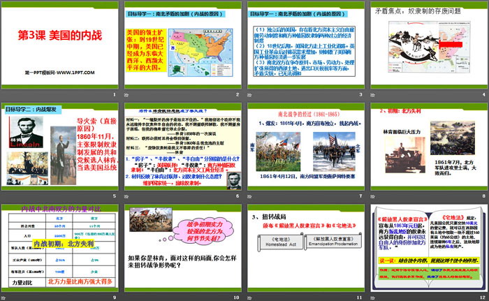 关键词:部编人教版九年级下册历史PPT课件免费下载,美国的内战PPT下载,.PPT格式;