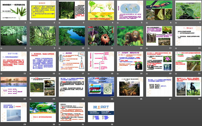 1、充分认识“雨林”在生态环境中的重要地位,增强学生的环保意识。
