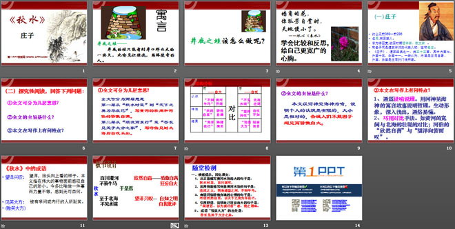 关键词:秋水教学课件,语文版九年级上册语文课件,九年级语文幻灯片课件下载,秋水PPT课件下载,.ppt格式