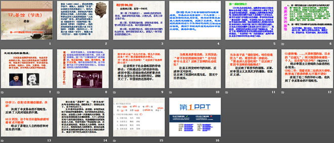 关键词:茶馆教学课件,语文版九年级上册语文课件,九年级语文幻灯片课件下载,茶馆PPT课件下载,.ppt格式