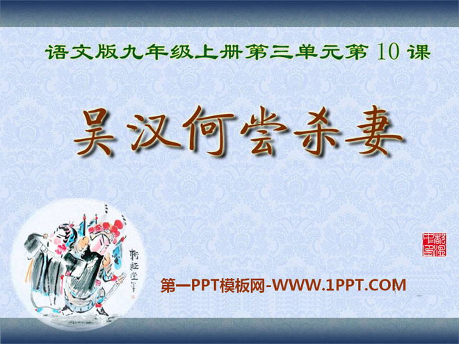 关键词:吴汉何尝杀妻教学课件,语文版九年级上册语文课件,九年级语文幻灯片课件下载,吴汉何尝杀妻PPT课件下载,.ppt格式
