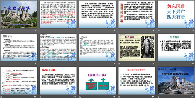 关键词:废墟的召唤教学课件,语文版九年级下册语文课件,九年级语文幻灯片课件下载,废墟的召唤PPT课件下载,.ppt格式