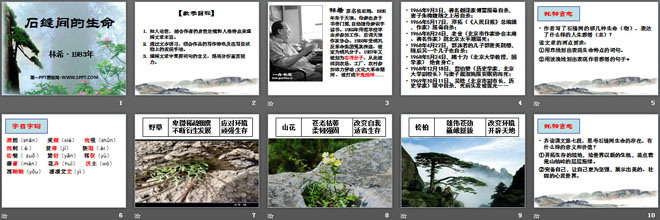 关键词:石缝间的生命教学课件,语文版九年级下册语文课件,九年级语文幻灯片课件下载,石缝间的生命PPT课件下载,.ppt格式