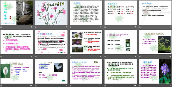 关键词:石缝间的生命教学课件,语文版九年级下册语文课件,九年级语文幻灯片课件下载,石缝间的生命PPT课件下载,.ppt格式