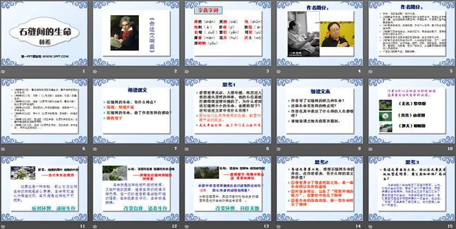 关键词:石缝间的生命教学课件,语文版九年级下册语文课件,九年级语文幻灯片课件下载,石缝间的生命PPT课件下载,.ppt格式