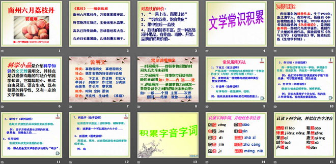 关键词:南州六月荔枝丹教学课件,语文版九年级下册语文课件,九年级语文幻灯片课件下载,南州六月荔枝丹PPT课件下载,.ppt格式
