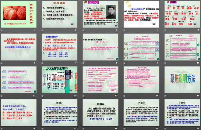 关键词:南州六月荔枝丹教学课件,语文版九年级下册语文课件,九年级语文幻灯片课件下载,南州六月荔枝丹PPT课件下载,.ppt格式