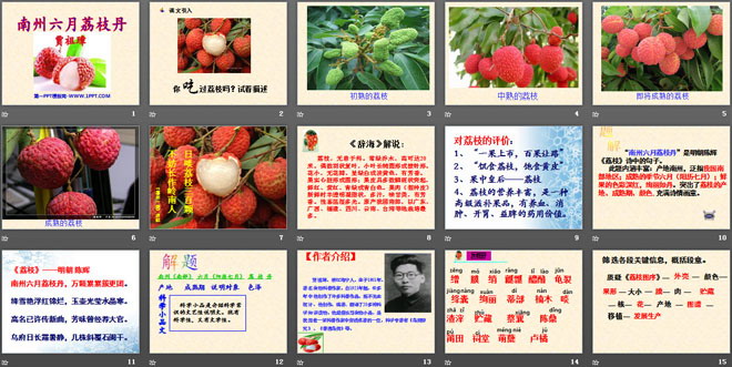 关键词:南州六月荔枝丹教学课件,语文版九年级下册语文课件,九年级语文幻灯片课件下载,南州六月荔枝丹PPT课件下载,.ppt格式