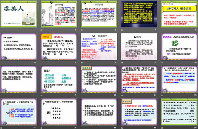 关键词:虞美人教学课件,语文版九年级下册语文课件,九年级语文幻灯片课件下载,虞美人PPT课件下载,.ppt格式
