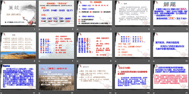 关键词:蒹葭教学课件,语文版九年级下册语文课件,九年级语文幻灯片课件下载,蒹葭PPT课件下载,.ppt格式