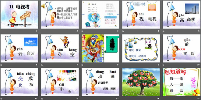 关键词:电视塔教学课件,语文A版一年级上册语文课件,一年级语文幻灯片课件下载,电视塔PPT课件下载,.ppt格式