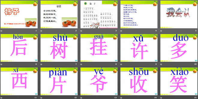 关键词:柿子教学课件,语文A版一年级上册语文课件,一年级语文幻灯片课件下载,柿子PPT课件下载,.ppt格式