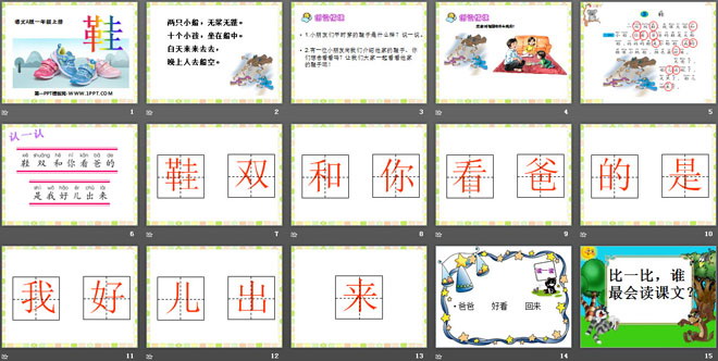 关键词:鞋教学课件,语文A版一年级上册语文课件,一年级语文幻灯片课件下载,鞋PPT课件下载,.ppt格式