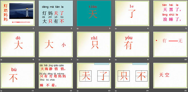 关键词:灯塔妈妈教学课件,语文A版一年级上册语文课件,一年级语文幻灯片课件下载,灯塔妈妈PPT课件下载,.ppt格式