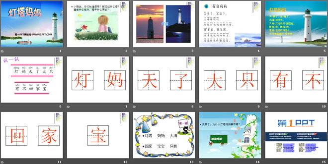 关键词:灯塔妈妈教学课件,语文A版一年级上册语文课件,一年级语文幻灯片课件下载,灯塔妈妈PPT课件下载,.ppt格式