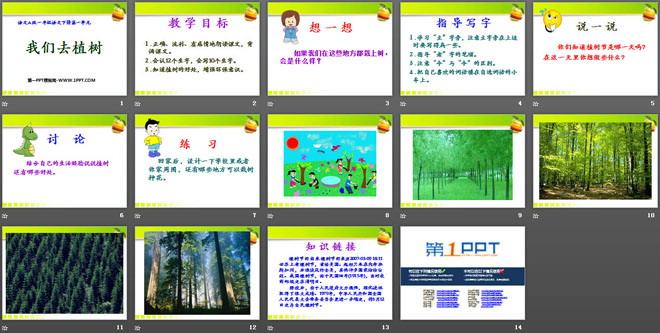 关键词:我们去植树教学课件,语文A版一年级下册语文课件,一年级语文幻灯片课件下载,我们去植树PPT课件下载,.ppt格式