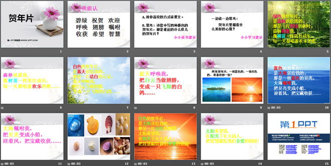 关键词:贺年片教学课件,语文A版一年级上册语文课件,一年级语文幻灯片课件下载,贺年片PPT课件下载,.ppt格式
