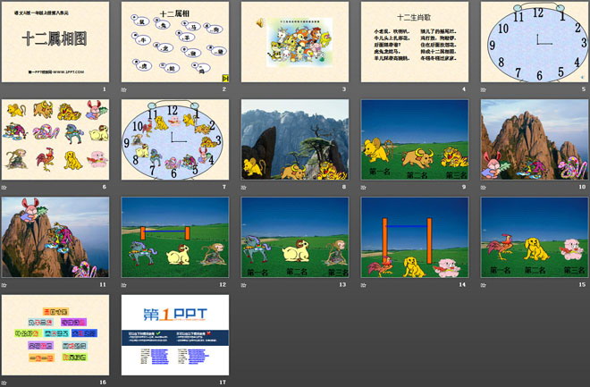关键词:十二属相教学课件,语文A版一年级上册语文课件,一年级语文幻灯片课件下载,十二属相PPT课件下载,.ppt格式