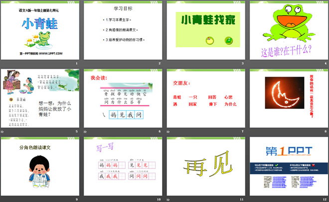关键词:小青蛙教学课件,语文A版一年级上册语文课件,一年级语文幻灯片课件下载,小青蛙PPT课件下载,.ppt格式
