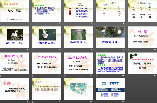 关键词:咏鹅教学课件,语文A版一年级上册语文课件,一年级语文幻灯片课件下载,咏鹅PPT课件下载,.ppt格式