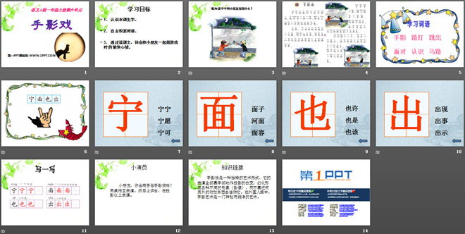 关键词:手影戏教学课件,语文A版一年级上册语文课件,一年级语文幻灯片课件下载,手影戏PPT课件下载,.ppt格式
