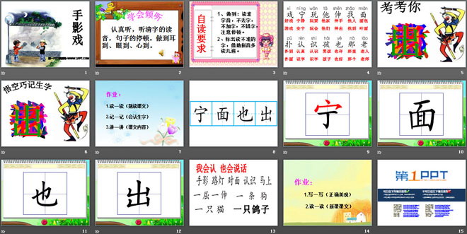 关键词:手影戏教学课件,语文A版一年级上册语文课件,一年级语文幻灯片课件下载,手影戏PPT课件下载,.ppt格式