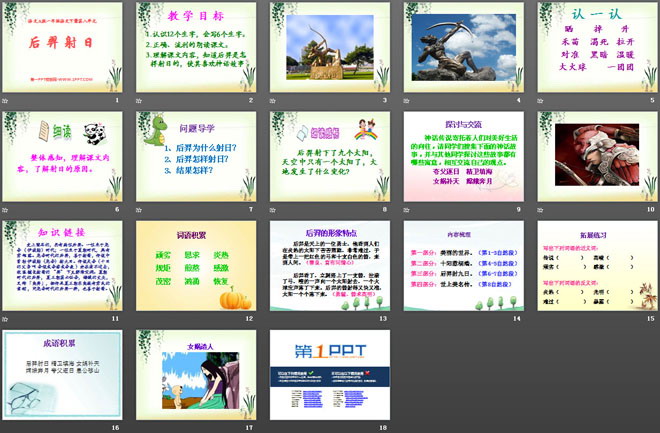 关键词:后羿射日教学课件,语文A版一年级下册语文课件,一年级语文幻灯片课件下载,后羿射日PPT课件下载,.ppt格式