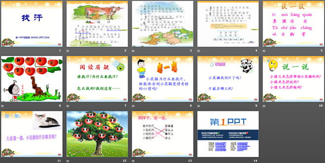 关键词:找汗教学课件,语文A版一年级下册语文课件,一年级语文幻灯片课件下载,找汗PPT课件下载,.ppt格式