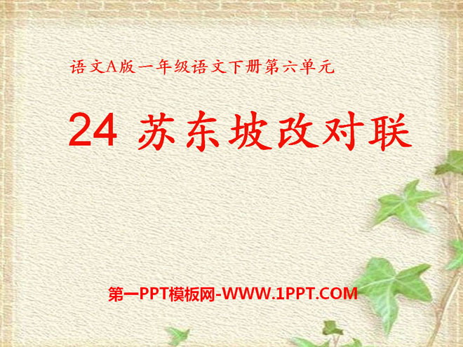 关键词:苏东坡改对联教学课件,语文A版一年级下册语文课件,一年级语文幻灯片课件下载,苏东坡改对联PPT课件下载,.ppt格式