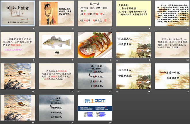 关键词:江上渔者教学课件,语文A版一年级下册语文课件,一年级语文幻灯片课件下载,江上渔者PPT课件下载,.ppt格式