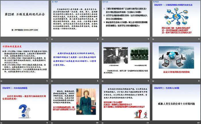 关键词:部编人教版九年级下册历史PPT课件免费下载,不断发展的现代社会PPT下载,.PPT格式;