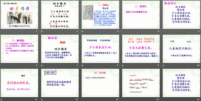 关键词:回乡偶书教学课件,语文A版二年级上册语文课件,二年级语文幻灯片课件下载,回乡偶书PPT课件下载,.ppt格式