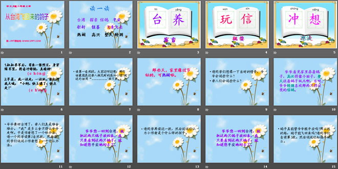 关键词:从台湾飞回来的鸽子教学课件,语文A版二年级上册语文课件,二年级语文幻灯片课件下载,从台湾飞回来的鸽子PPT课件下载,.ppt格式