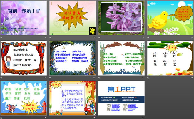 关键词:窗前一株紫丁香教学课件,语文A版二年级下册语文课件,二年级语文幻灯片课件下载,窗前一株紫丁香PPT课件下载,.ppt格式
