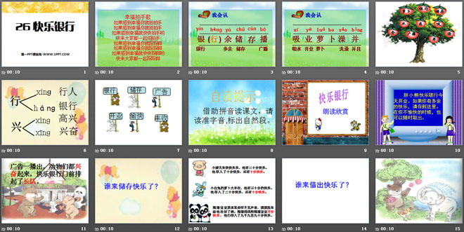关键词:快乐银行教学课件,语文A版二年级上册语文课件,二年级语文幻灯片课件下载,快乐银行PPT课件下载,.ppt格式