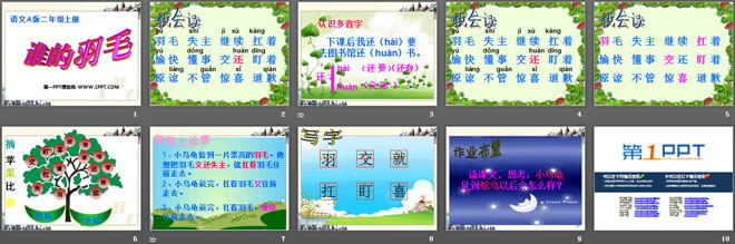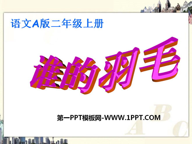 关键词:谁的羽毛教学课件,语文A版二年级上册语文课件,二年级语文幻灯片课件下载,谁的羽毛PPT课件下载,.ppt格式