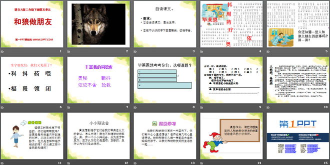 关键词:和狼做朋友教学课件,语文A版二年级下册语文课件,二年级语文幻灯片课件下载,和狼做朋友PPT课件下载,.ppt格式
