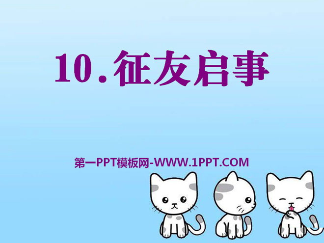 关键词:征友启事教学课件,语文A版二年级下册语文课件,二年级语文幻灯片课件下载,征友启事PPT课件下载,.ppt格式