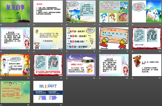 关键词:征友启事教学课件,语文A版二年级下册语文课件,二年级语文幻灯片课件下载,征友启事PPT课件下载,.ppt格式