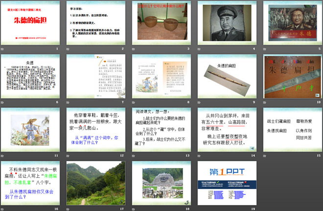 关键词:朱德的扁担教学课件,语文A版二年级下册语文课件,二年级语文幻灯片课件下载,朱德的扁担PPT课件下载,.ppt格式