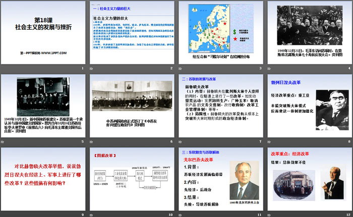 关键词:部编人教版九年级下册历史PPT课件免费下载,社会主义的发展与挫折PPT下载,.PPT格式;